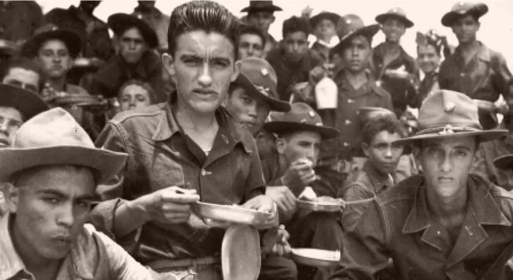 Soldiers of the 65th Infantry take a break from training in Salinas, Puerto Rico, in 1941, National Archives
