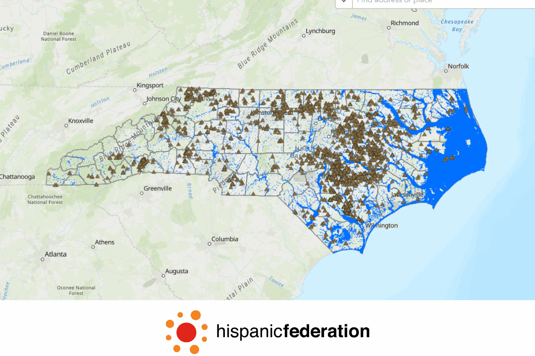 The NC Migrant Emergency Management Database is an interactive geospatial tool developed collaboratively by Hispanic Federation and the University of North Carolina’s Carolina Demography, the applied research unit of the Carolina Population Center (CPC). This database integrates registered Department of Labor farmworker camps alongside critical resource locations, such as hospitals, shelters, fire departments, and flooding zones to support emergency managers, local governments, community organizations, and residents in disaster preparedness, response, and recovery.